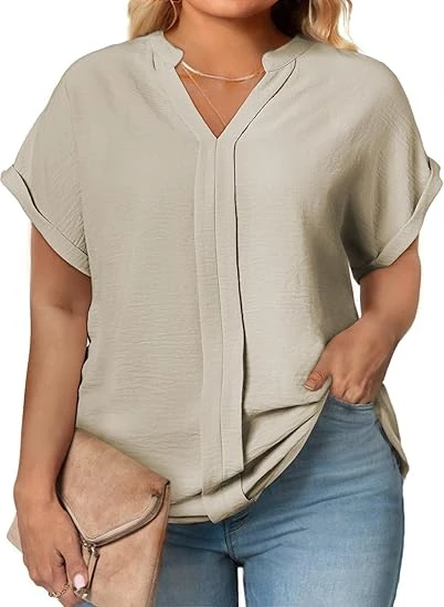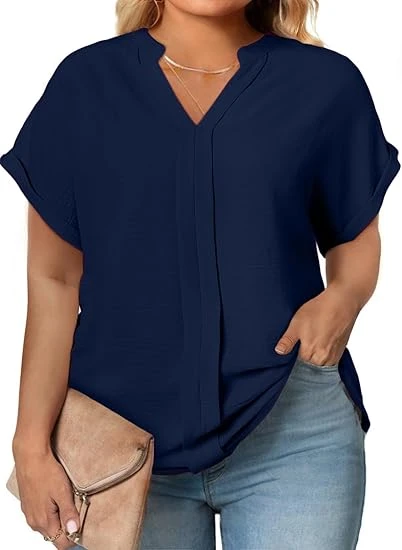 Womens Plus Size Summer Tops V Neck Short